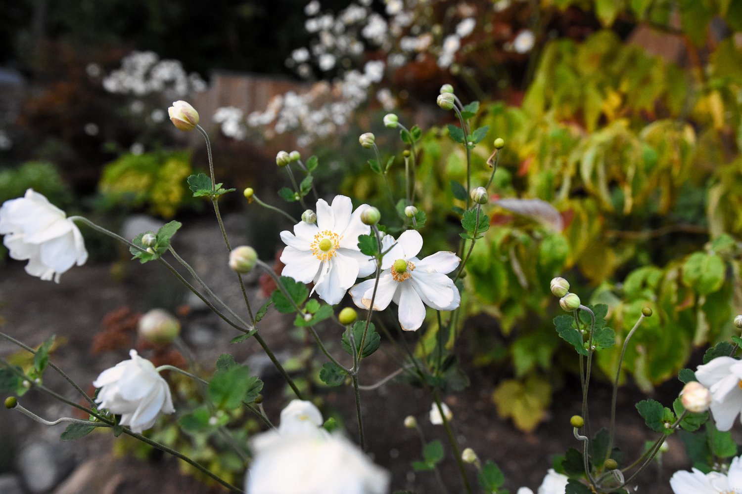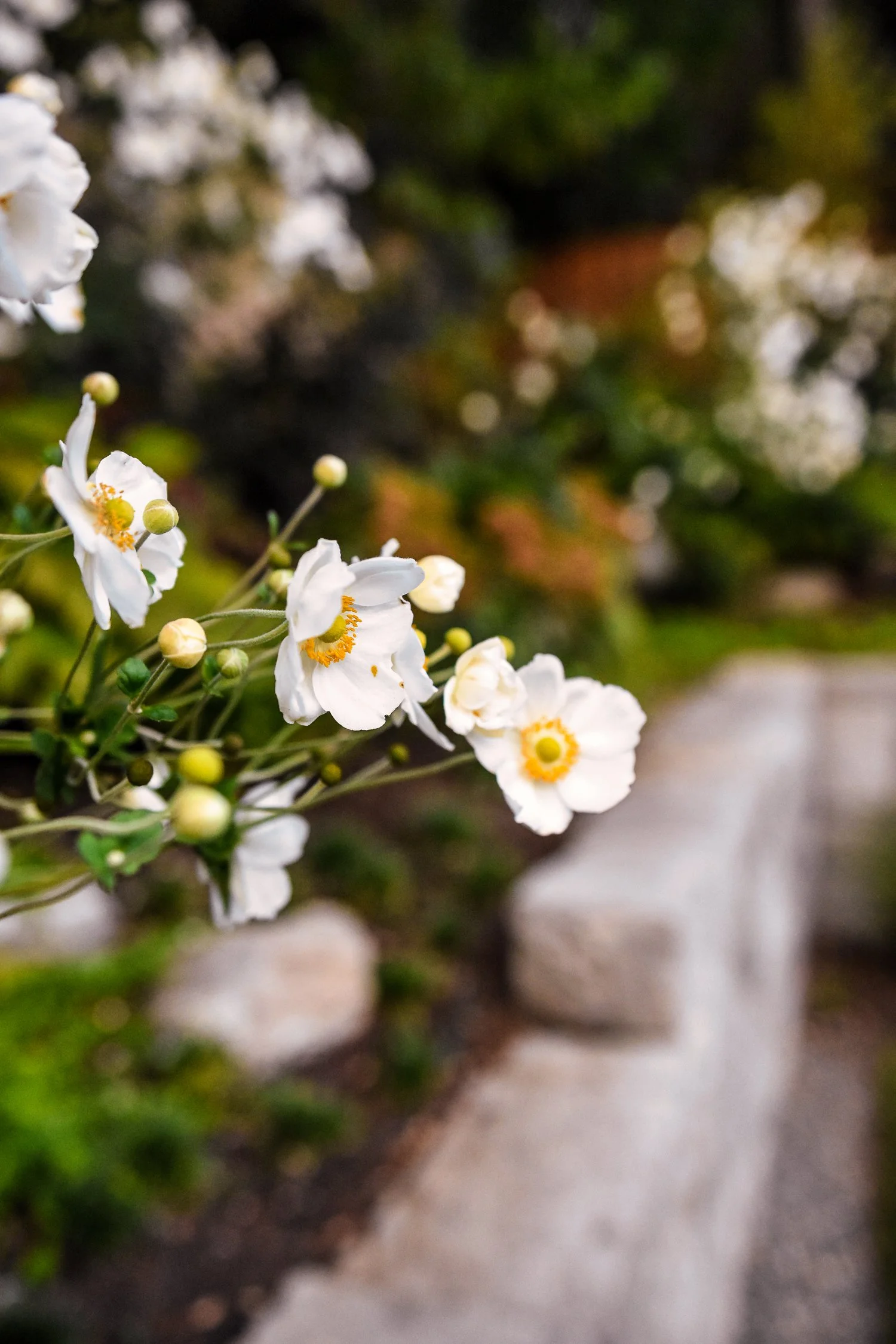Inspired by Japanese garden design, the plant design features sculptural Boxwood and Rhododendron punctuated by vibrant Hydrangea and textured Japanese Maple trees with a variety of colorful perennials and airy ornamental grasses throughout the landscape.
