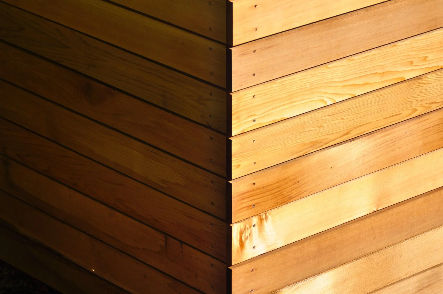 In the backyard, rustic timber walls manage the grades, alongside the expansive sand-finished concrete patio spaces, positioned to create a variety of dynamic views of a roomy lawn.