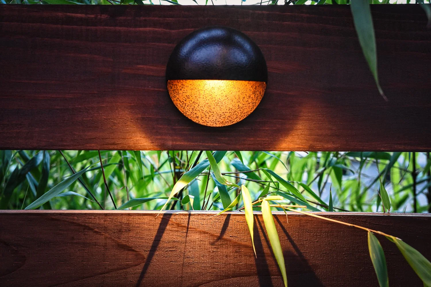Outdoor landscape lighting is key to this courtyard landscape, with integrated fixtures in the spa zone and many highlights throughout the garden spaces.