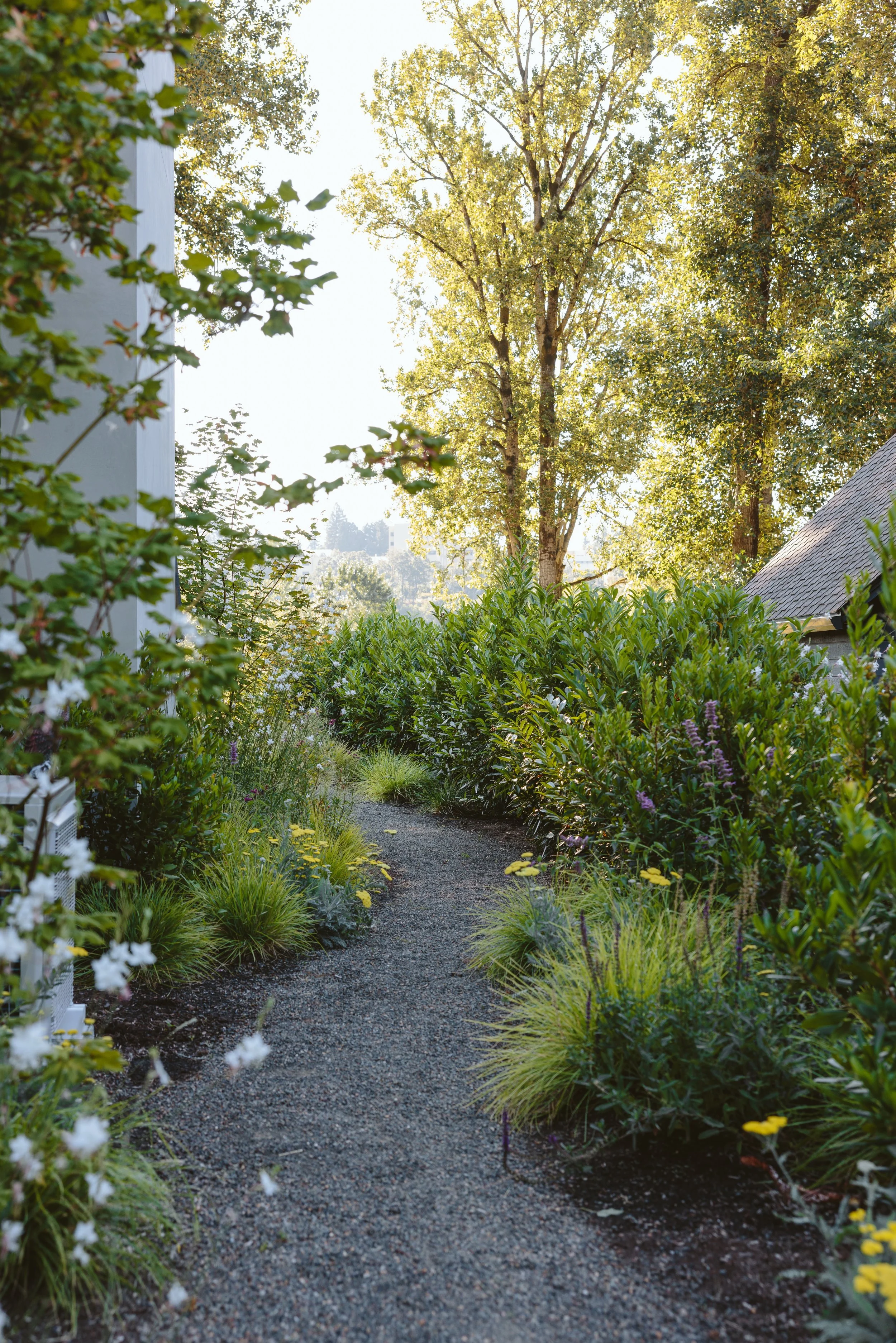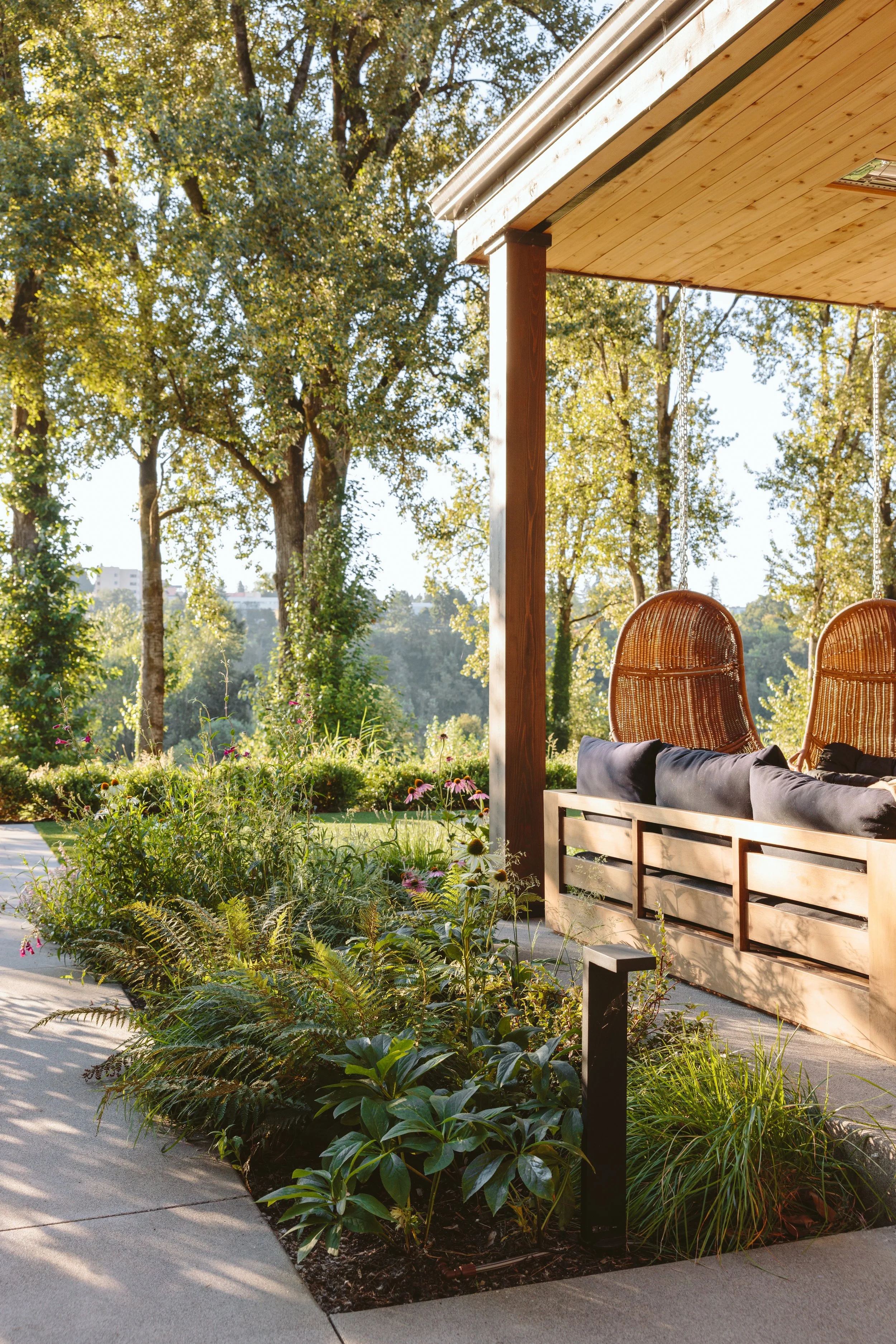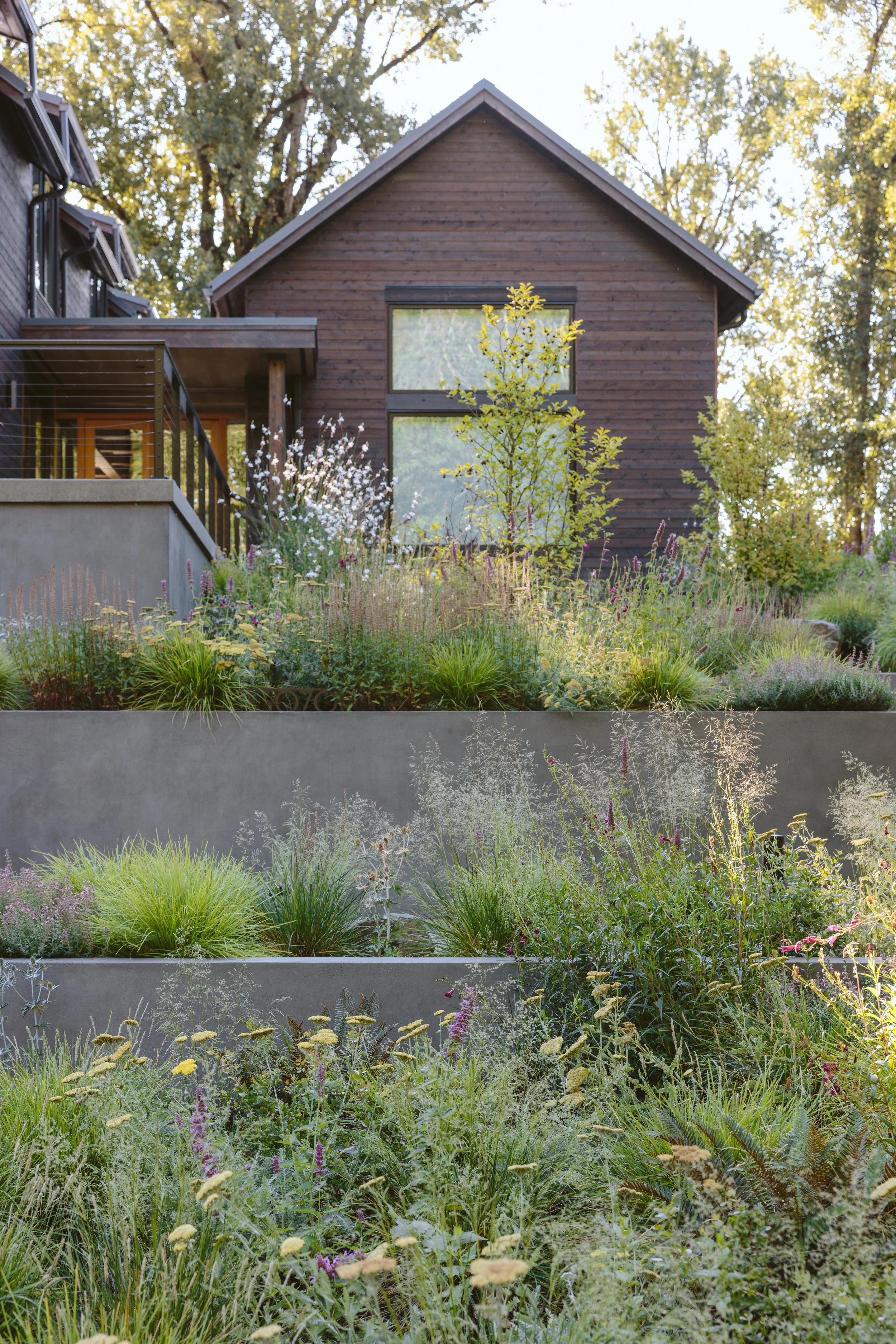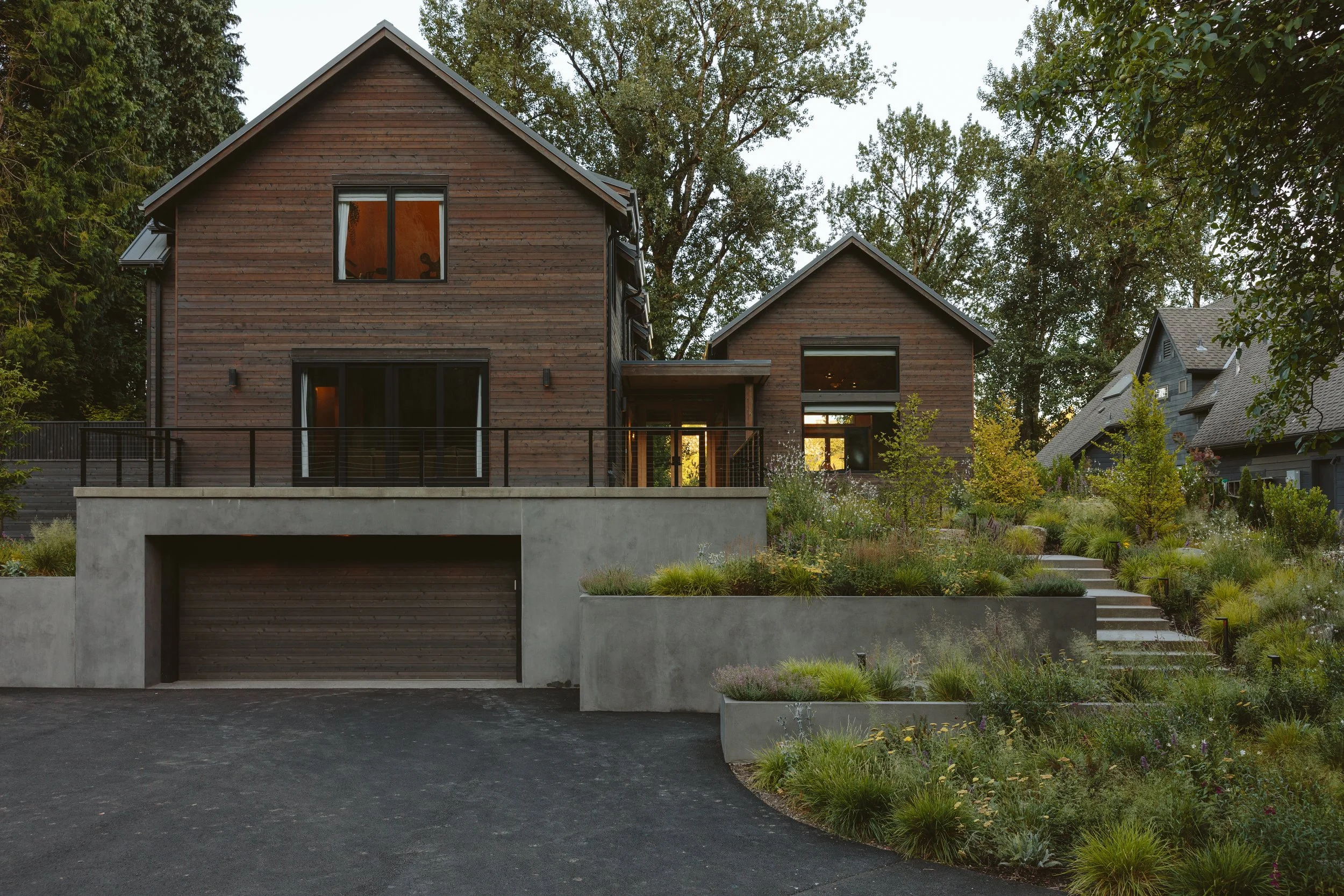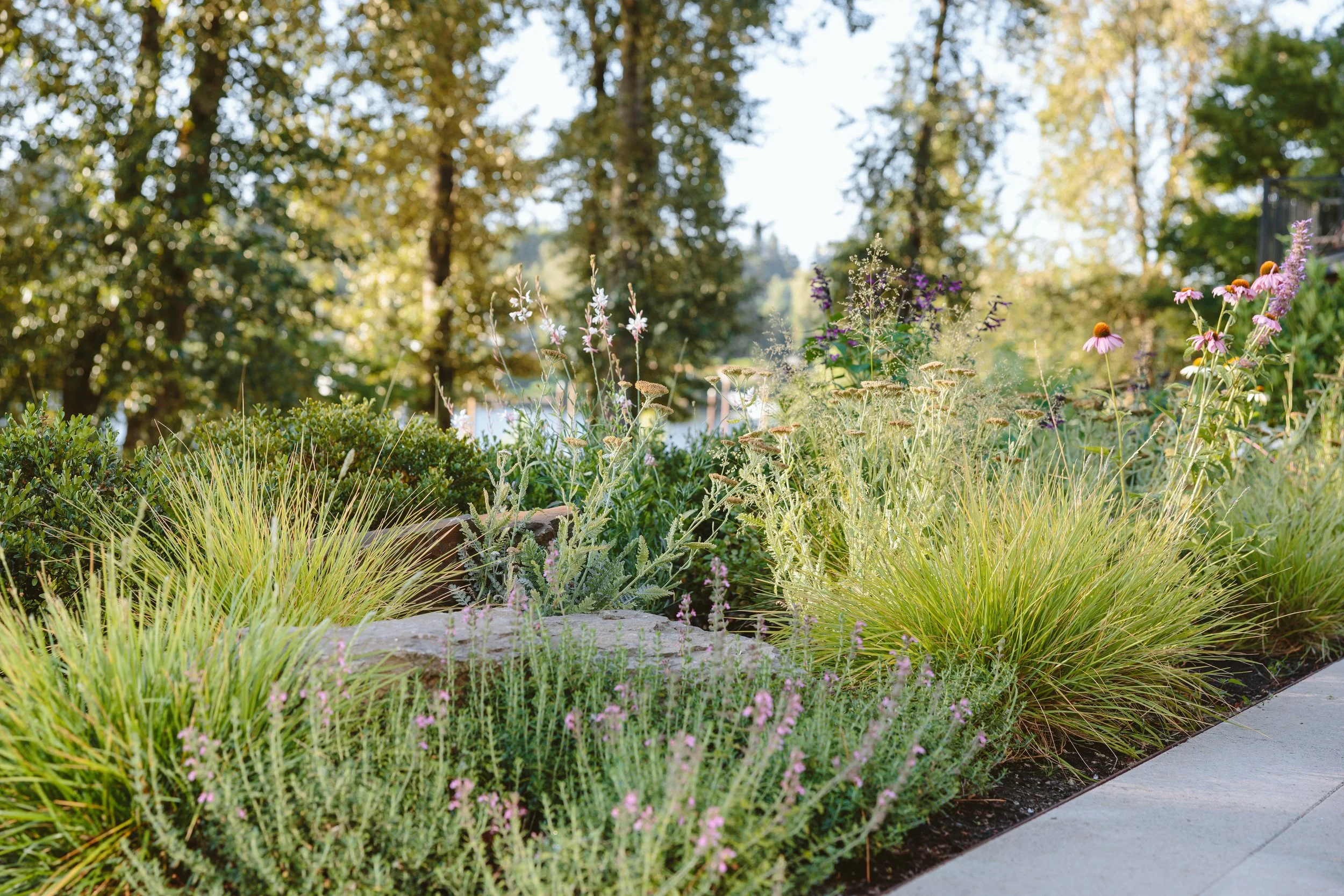 Sitting atop the west bank of the Willamette River, the expansive landscape surrounding this stunning contemporary residence — designed by Annie Usher Architecture and built by Sierra Custom Construction — balances the clean, architectural lines of the home with a diverse, naturalistic plantscape.